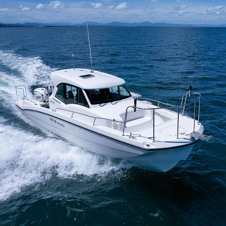 ヤマハ「YFR-330」は、釣りとクルージングの両方を楽しめるプレミアムフィッシングボートです。安定性と走行性能に優れたディープVハルを採用し、荒天時でも安心の操船を実現。広々としたデッキスペースと快適なキャビンを備え、長時間の釣行でも疲れにくい設計です。最新の電子制御船外機と操作システム「Helm Master EX」に対応し、快適で直感的な操船をサポートします。